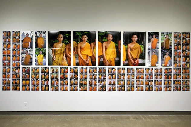 "Ho Tam's Posing is a series of portraiture that mixes the traditions of social documentary and snapshot photography. The title of the exhibit refers to the strangers who are asked to pose for the photographer in public spaces. Using a consumer type point-and-shoot camera, the snapshot sessions are conducted candidly, resulting in informal portraits of the individuals in their casual and spontaneous, yet at times intriguing and revealing, personae. Subjects include people on the streets of Montreal, Buddhist monks in Bangkok and guys with the stuffed animals they have won on the CNE midway."